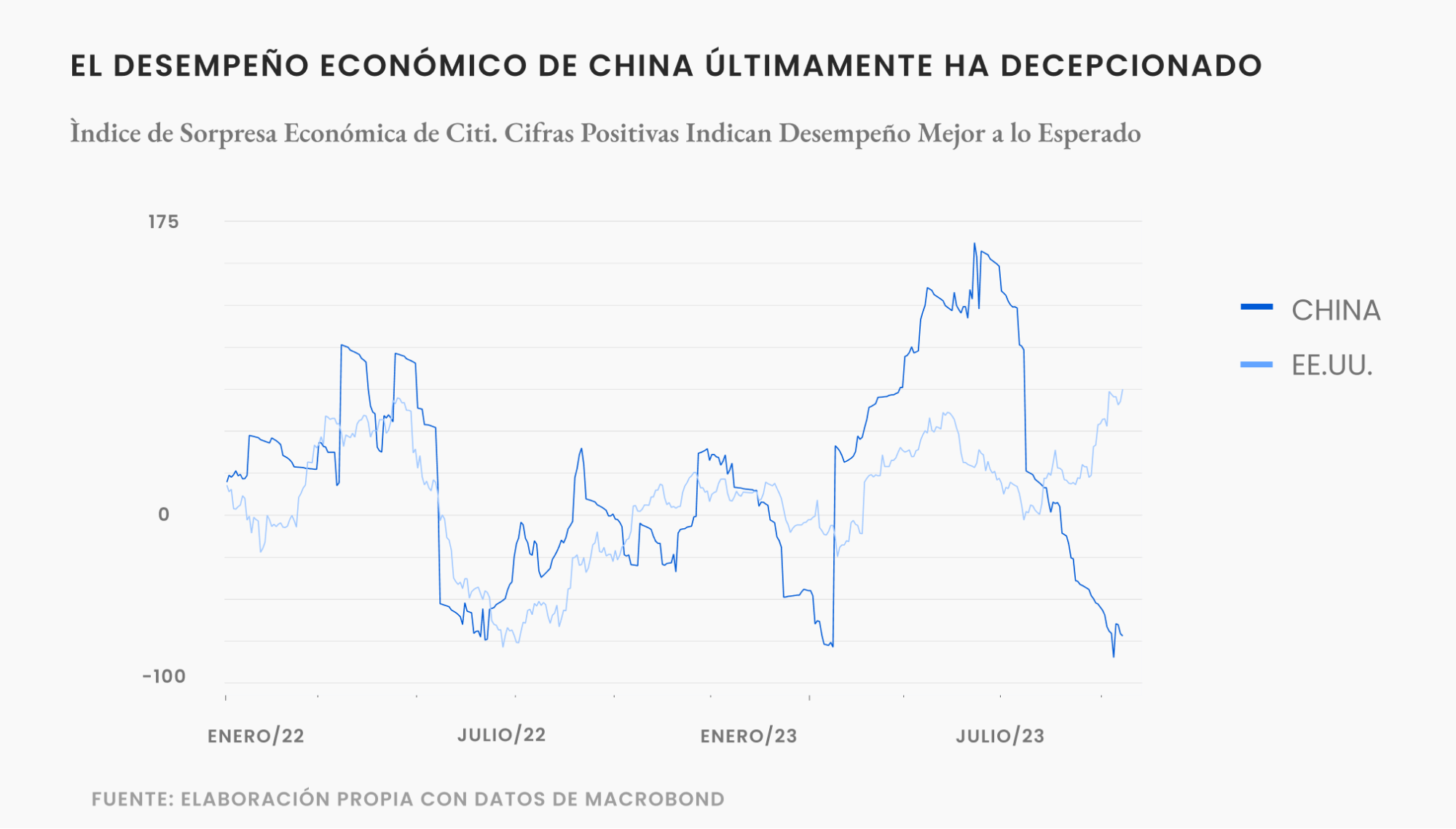 Al inicio de año había mucha expectativa por la reapertura de China. Pero después de un buen primer trimestre, los datos empezaron a decepcionar, y mostraron que la economía iba perdiendo impulso.