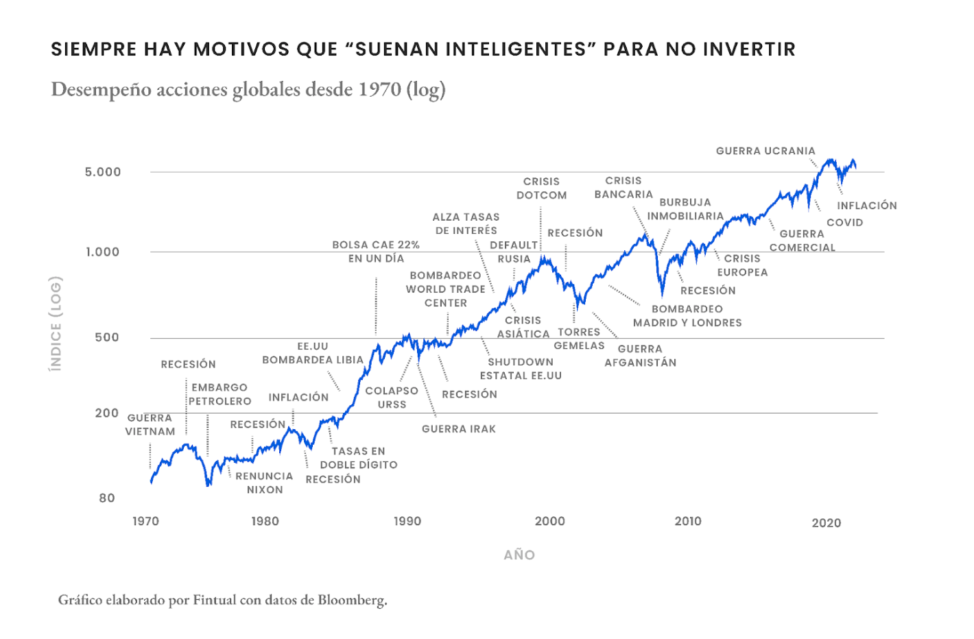 A mí me resulta mostrar este gráfico y que vea que al final por mucha crisis que haya, igual históricamente todo sigue pa’rriba.