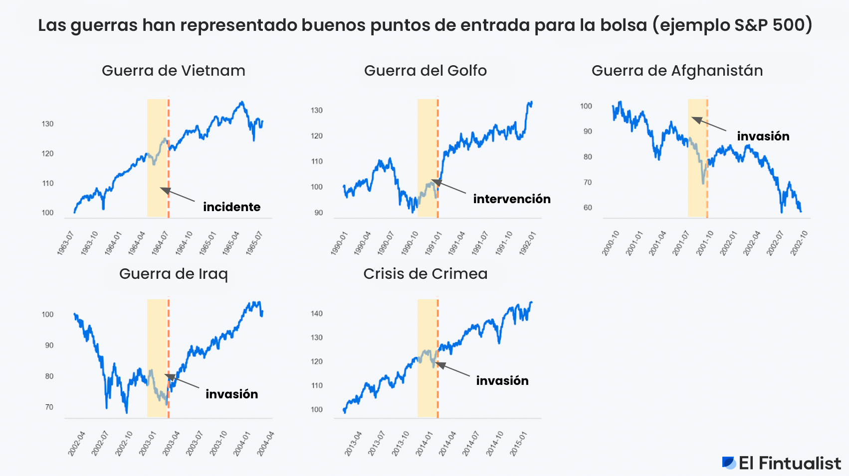En un estudio hecho por Vanguard antes de la invasión de Rusia a Ucrania, se analizaron momentos donde existieron escalamientos o tensiones geopolíticas -como las que estamos viviendo actualmente- desde 1960. Encontraron que después de estos eventos, el mercado acumulaba un retorno promedio de 5% a los 6 meses y de 9% a los 12 meses.