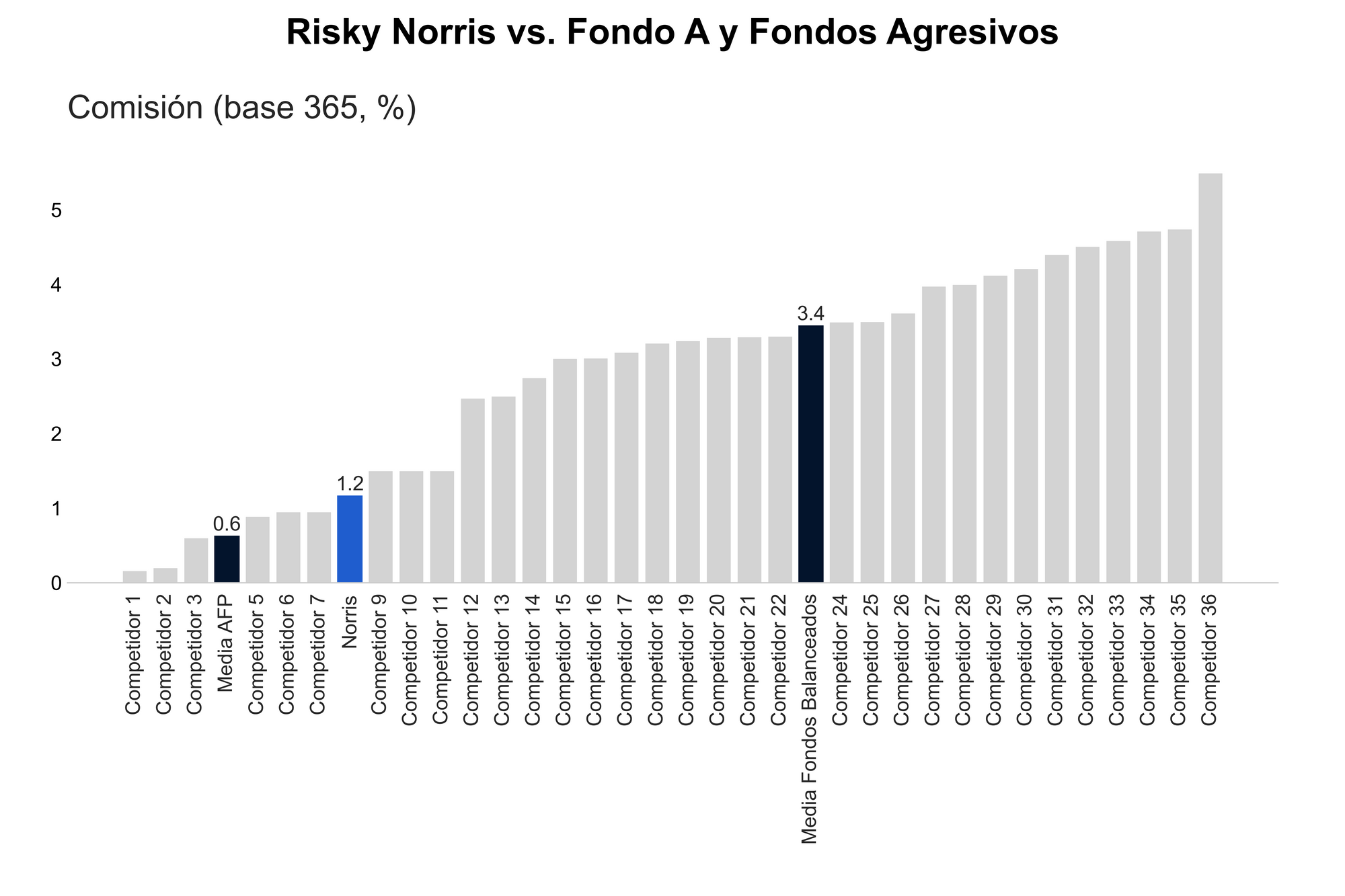 Lo primero que llama la atención es el nivel de comisiones en este peer group. Hay fondos que cobran más de 5% anual en comisiones. Risky Norris se ubica con una comisión bastante competitiva frente a los fondos mutuos balanceados, pero mayor al promedio simple de las AFP.