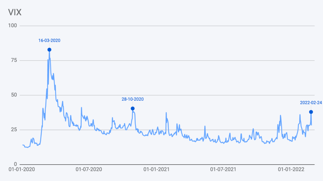 Un buen indicador de la incertidumbre que existe en el mercado es la volatilidad, una medida de cuánto varía el valor de algo, y con ello, el riesgo de que valga distinto de lo que uno espera. Un indicador muy común de la volatilidad esperada en el mercado es el VIX, o índice del pánico.