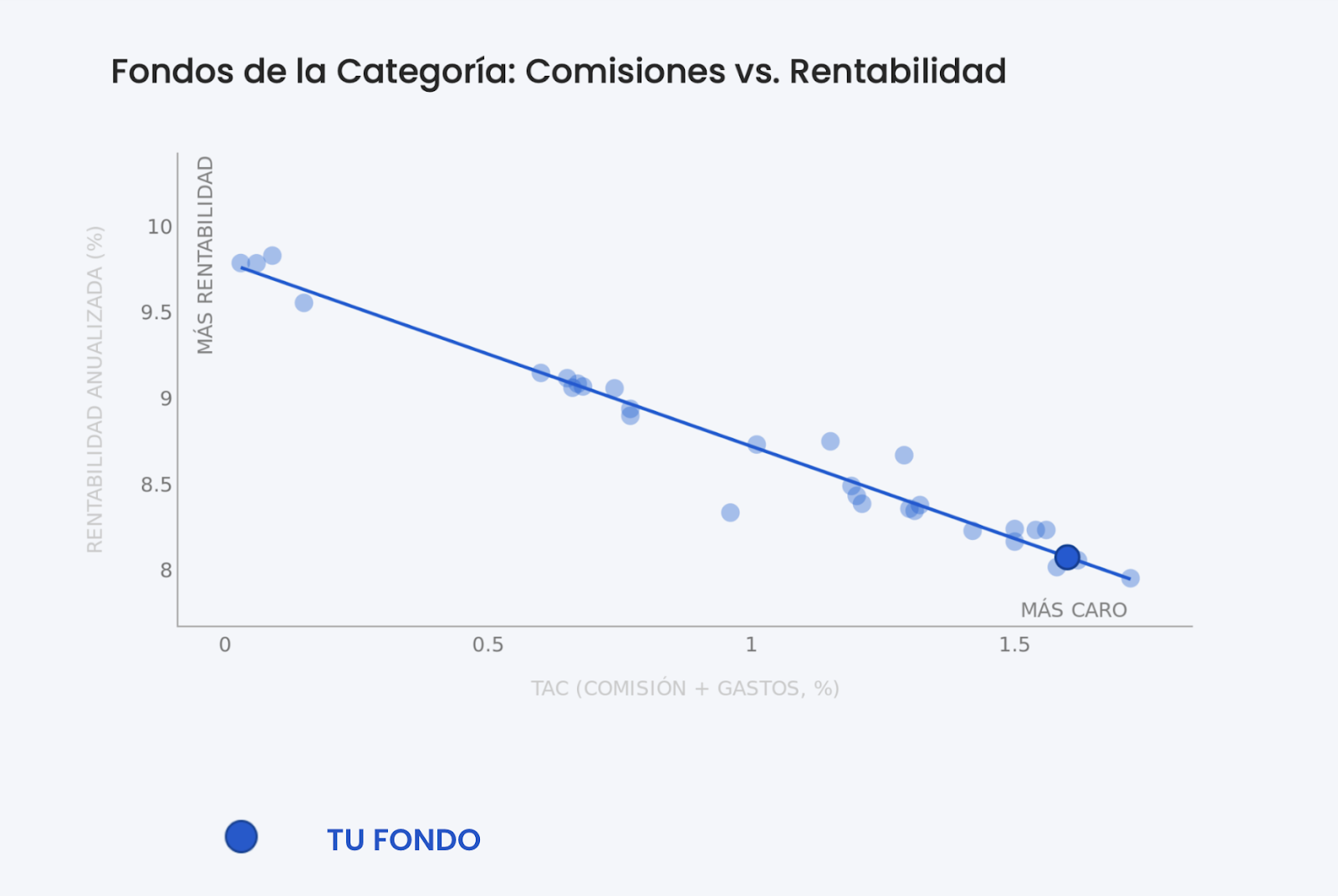 - Compara si la comisión que pagas es alta o baja respecto de fondos comparables.