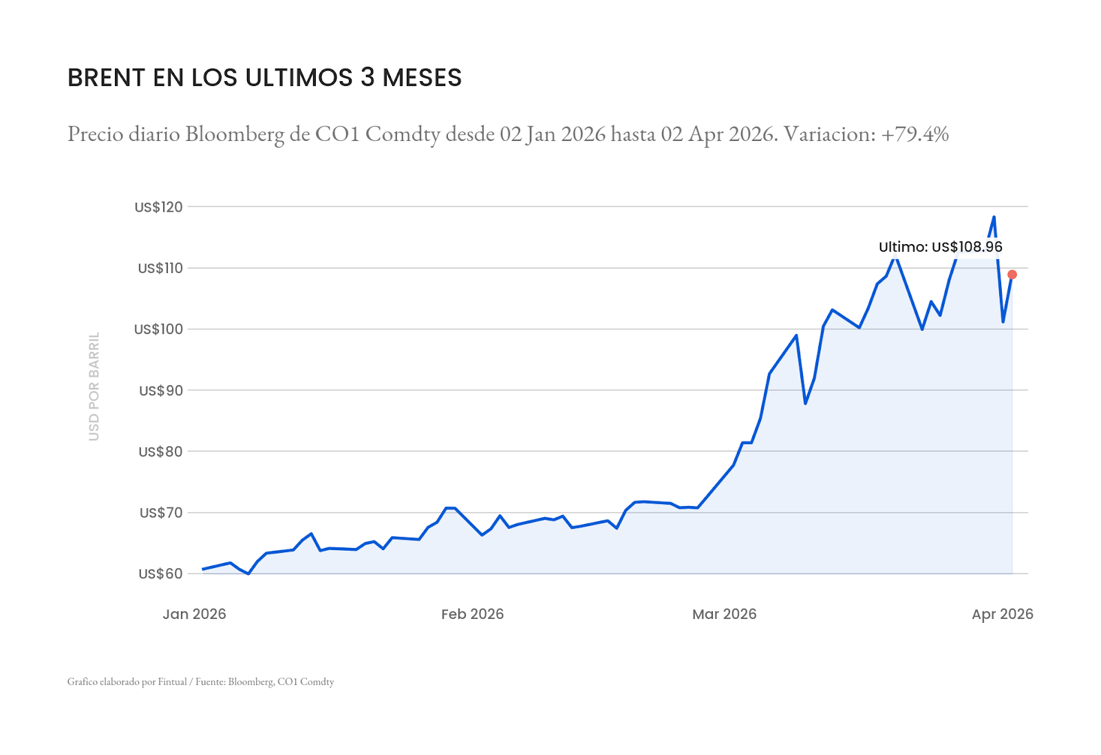 El problema está en lo que viene. El Banco Central mantuvo la TPM en 4,5% y anticipó que la inflación podría bordear 4% desde el segundo trimestre, empujada sobre todo por combustibles más caros. Y ese riesgo dejó de ser teórico. En la noche del 1 de abril, Trump dijo en cadena nacional que Estados Unidos golpearía a Irán “extremadamente fuerte” durante las próximas dos o tres semanas. Los mercados reaccionaron rápido: el petróleo Brent, ese que le “pega” directo al precio de los combustibles en Chile, llegó a subir a la mañana siguiente alrededor de 10%, esto es, más de US$109 por barril. El petróleo Brent acumula un alza de más de 50% desde que inició el conflicto. Para Chile, entonces, el precio del petróleo es un shock en desarrollo, con potencial de seguir metiendo presión a los combustibles, al tipo de cambio y, por esa vía, a la inflación local. Triste por la guerra, mal por la inflación.