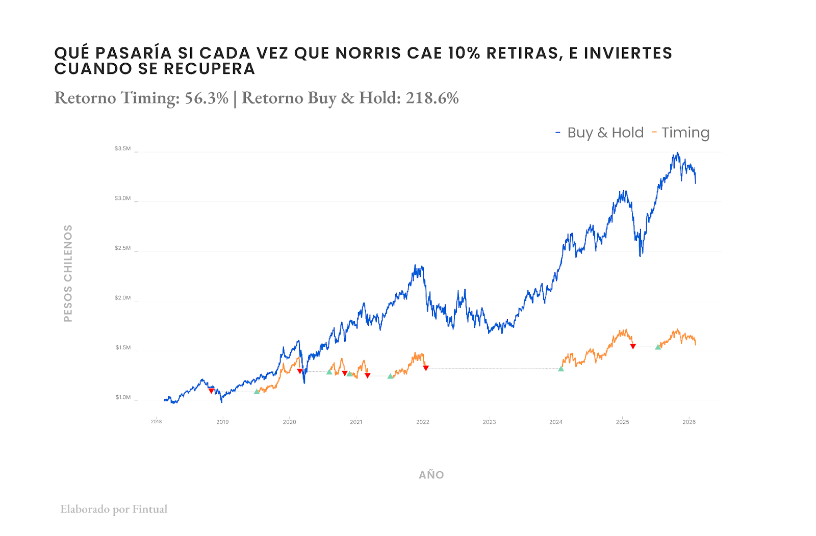 Las rentabilidades mostradas son nominales y corresponden a la serie A del Fondo Mutuo Fintual Risky Norris, que al cierre de 11/marzo/2026 son: 2,01% último mes, -2,50% últimos tres meses, 26,93% último año.