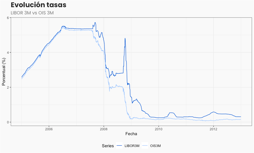 El otro argumento es que previo a la crisis del 2008, no existía la ingeniería financiera de hoy en día, o al menos no se había expandido tanto, y se suponía que la LIBOR igualaba a una tasa libre de riesgo (esa era la convención de aquel entonces). La realidad, con los datos a la vista, es que era apreciable la diferencia entre una tasa consensuada (LIBOR) y otra tasa que se construya a partir de transacciones reales.