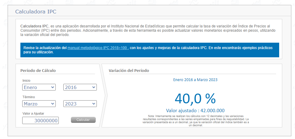 Lo primero que pensé –ahora trabajando en Fintual– fue “¿cuánta plata serán esos 30 palos hoy?”. Me fui a la calculadora de IPC del INE y tiré los números: desde enero del 2016 a marzo del 2023