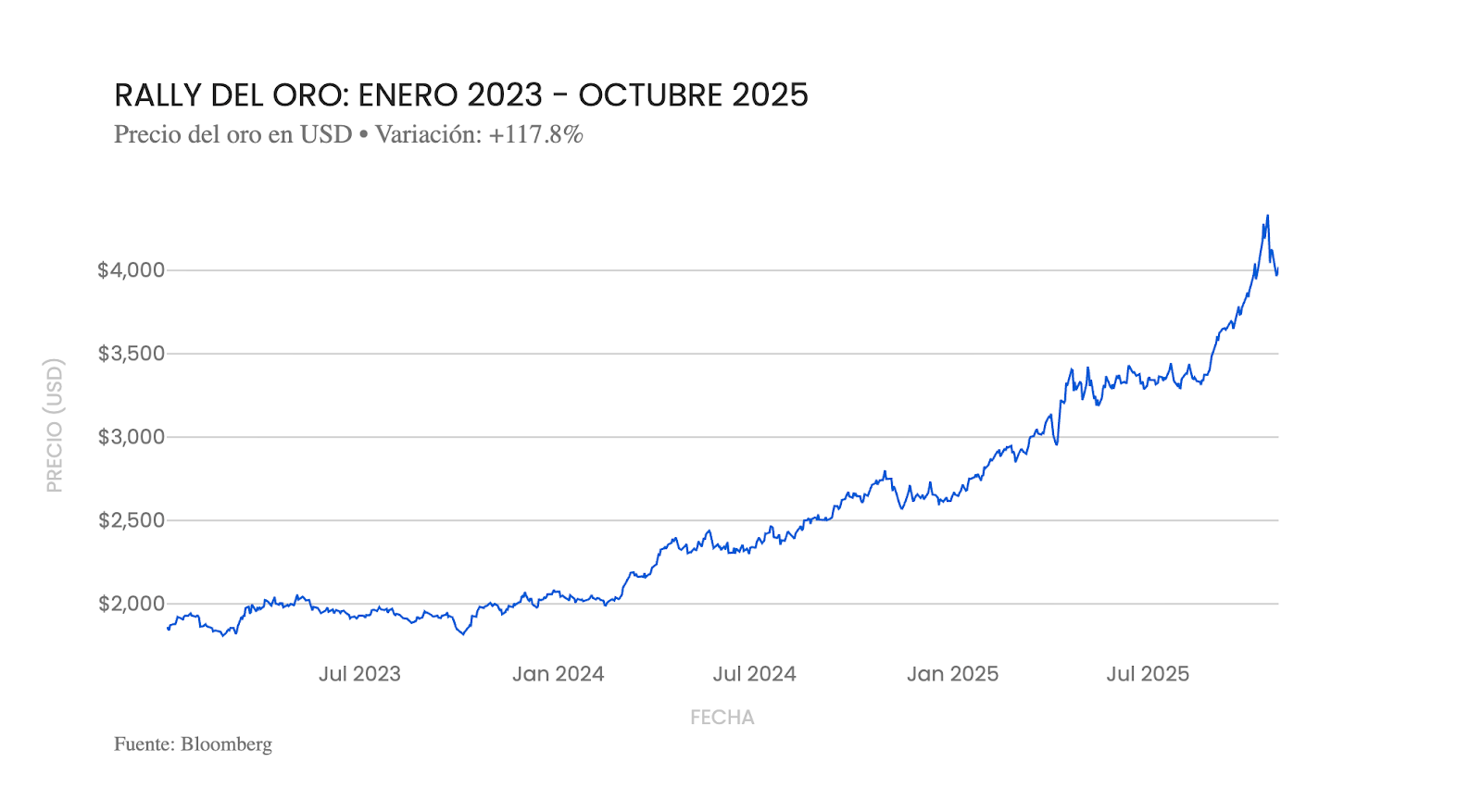 El oro lleva un par de décadas de buenos retornos, pero este año ha tenido un desempeño excepcional, con rendimientos cercanos al 50%, muy por sobre su promedio histórico.