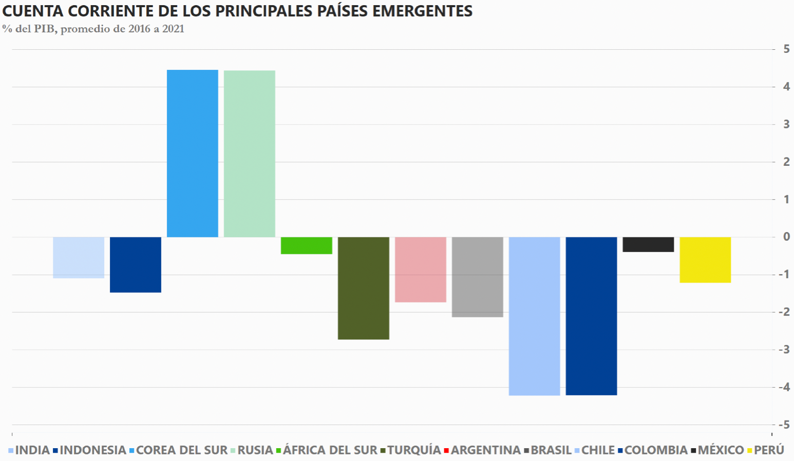 Con los países funciona igual: los emergentes, como Chile, suelen no tener suficientes ahorros propios para invertir y seguir creciendo. Entonces, sus cuentas corrientes suelen estar en déficit.