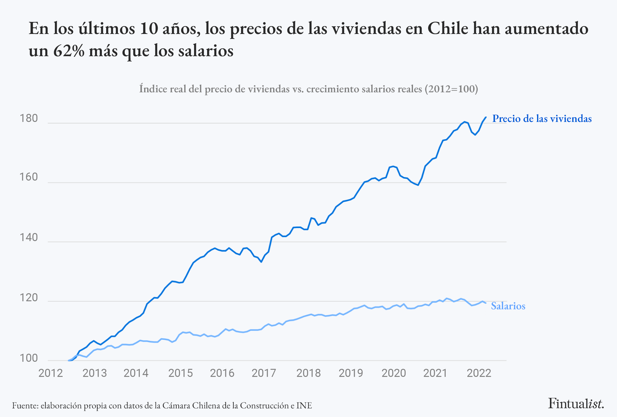 La demanda de viviendas en Chile es superior a la oferta, sobre todo en sectores urbanos, como Santiago. Esto ha provocado (entre otros factores) el fuerte aumento que han experimentado los precios de las viviendas los últimos años.