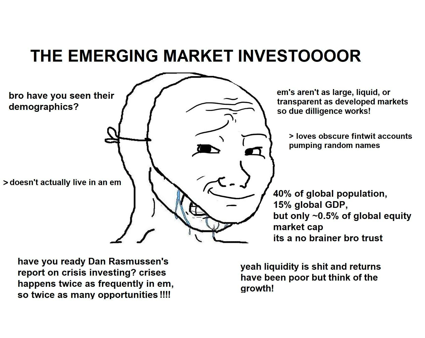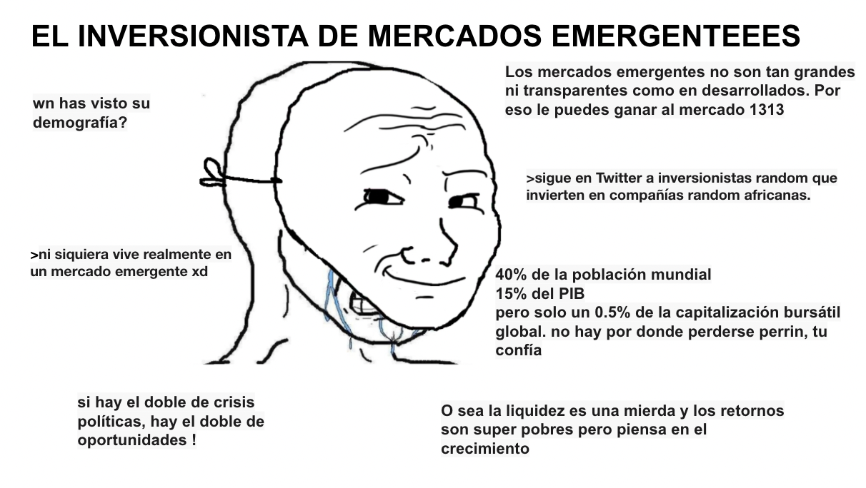 El meme se ríe del estereotipo del inversionista de mercados emergentes (EM por sus siglas en inglés).
