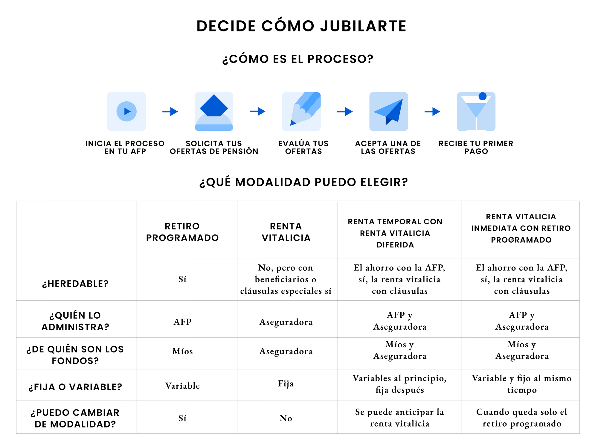 Paso 9. Ahora que tienen toda tu plata en un mismo pozo (el gran premio), hay cuatro formas posibles en las que puedes jubilarte, En la puerta número 1 tienes el retiro programado: el pozo que juntaste de tus ahorros obligatorios+voluntarios, va a seguir siendo invertido en la AFP y mes a mes te van a pagar un monto.