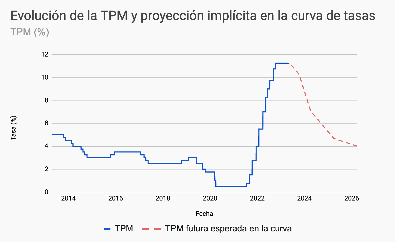 Como dijimos antes, la curva representa lo que espera el mercado respecto de la tasa de política monetaria para el futuro.