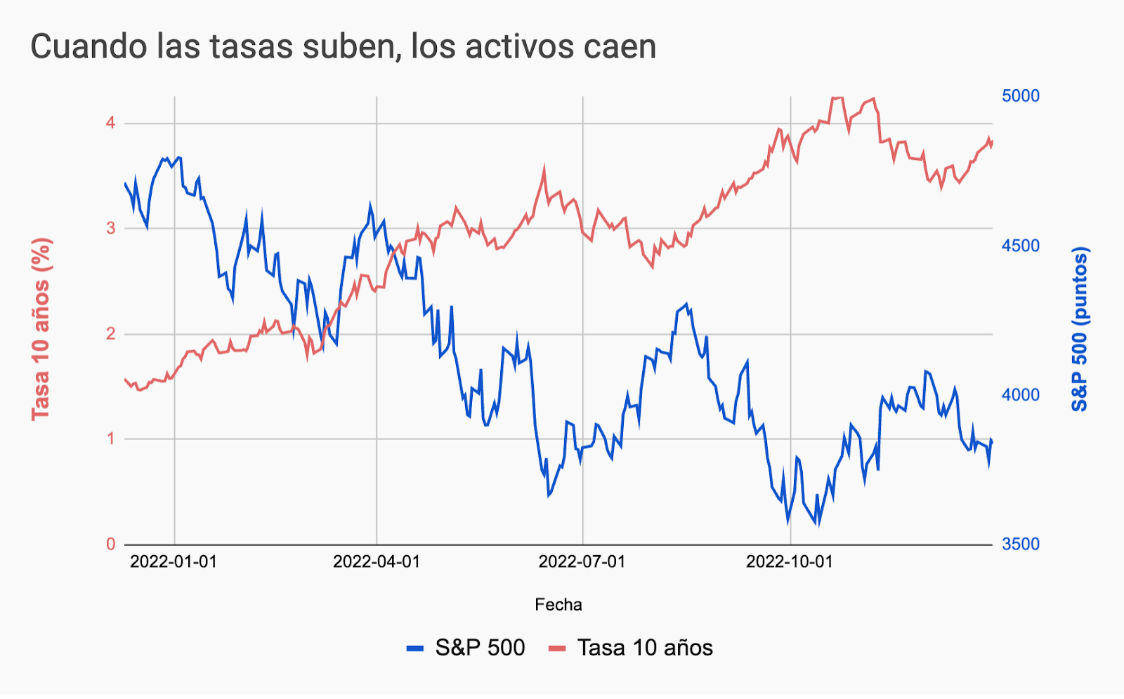 La caída que tuvieron los mercados en 2022 se asocia fuertemente al alza que tuvieron las tasas de interés ese año.
