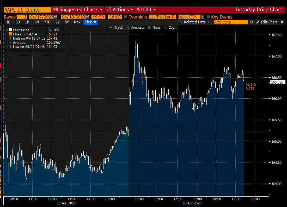 El 17 de Abril Apple anunció la nueva cuenta de ahorro, y el 18 de Abril ya se podía ver la reacción del mercado al producto: no fue muy llamativa - un aumento en el precio de las acciones de Apple de ~$1.5 USD.