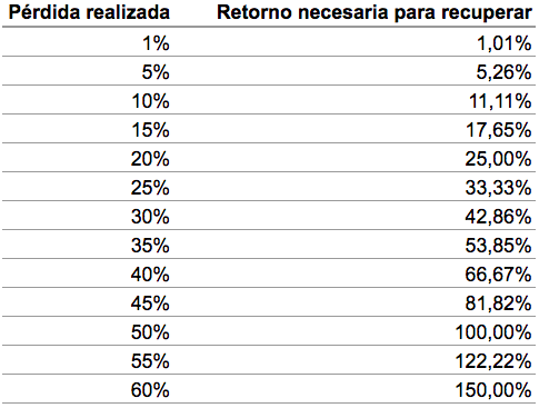 En la columna derecha está lo que necesitas volver a rentar para volver al mismo nivel después de enfrentar una pérdida (columna izquierda):