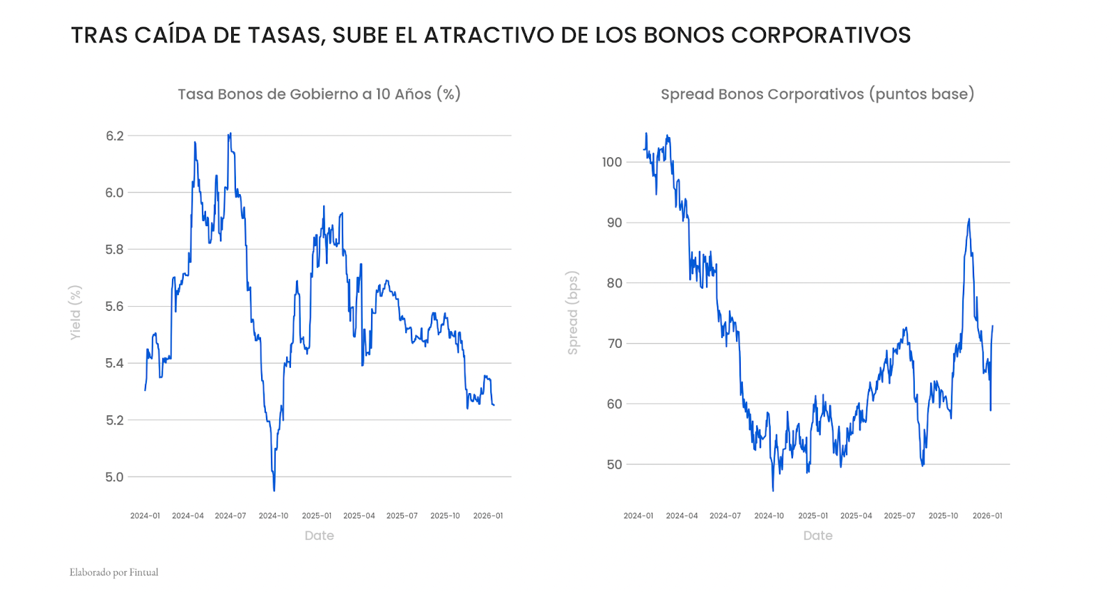 - Además, las tasas de los bonos corporativos y bancarios ofrecen un premio atractivo frente al escenario de recortes del Banco Central.