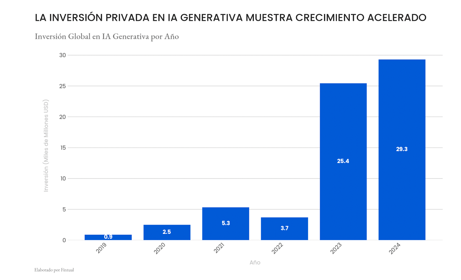 Este patrón es consistente con dinámicas de exuberancia en el mercado de capital privado. Según el AI Index 2025 de Stanford, la inversión privada en IA superó los US$250.000 millones en 2024, y solo el segmento de IA generativa concentró cerca de US$30.000 millones, multiplicando por ocho veces los montos de 2022.