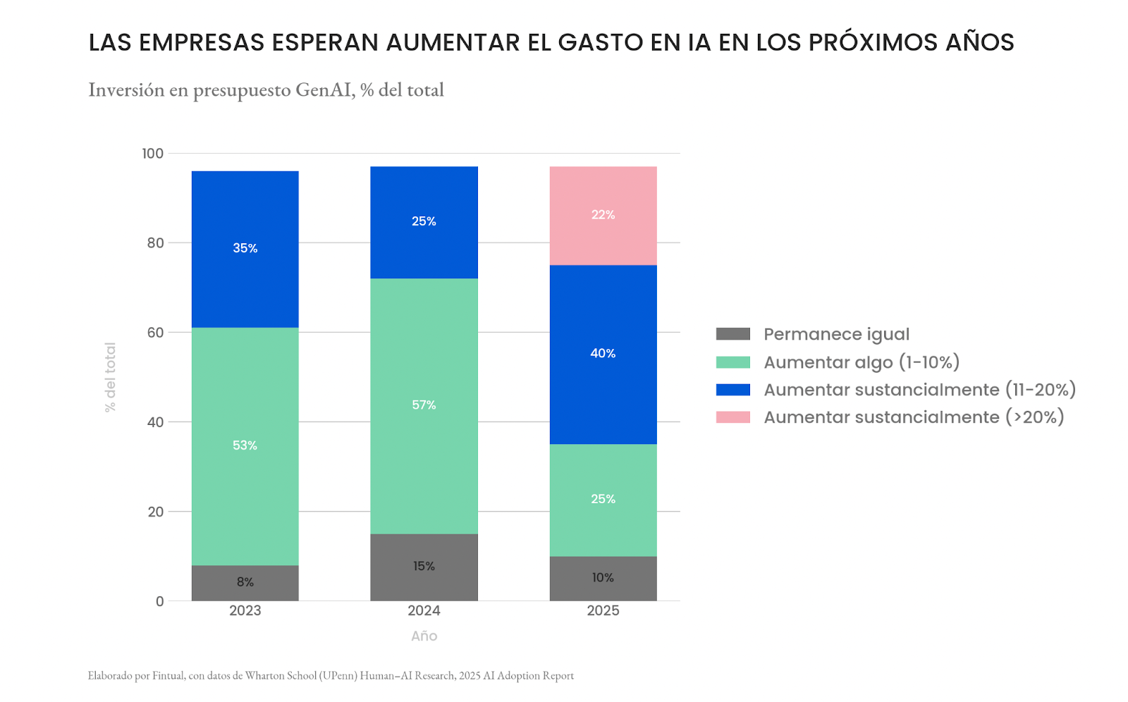 De hecho, la demanda futura parece lejos de agotarse. Según el Informe de Adopción de IA 2025 de Wharton School de la Universidad de Pennsylvania, basado en una encuesta a 800 altos ejecutivos de grandes empresas en Estados Unidos, la mayoría de las compañías espera seguir aumentando su gasto en IA durante los próximos 2 a 5 años. Ese incremento no se limita a aplicaciones específicas, sino que requiere acceso continuo a modelos fundacionales cada vez más potentes, seguros y escalables.
