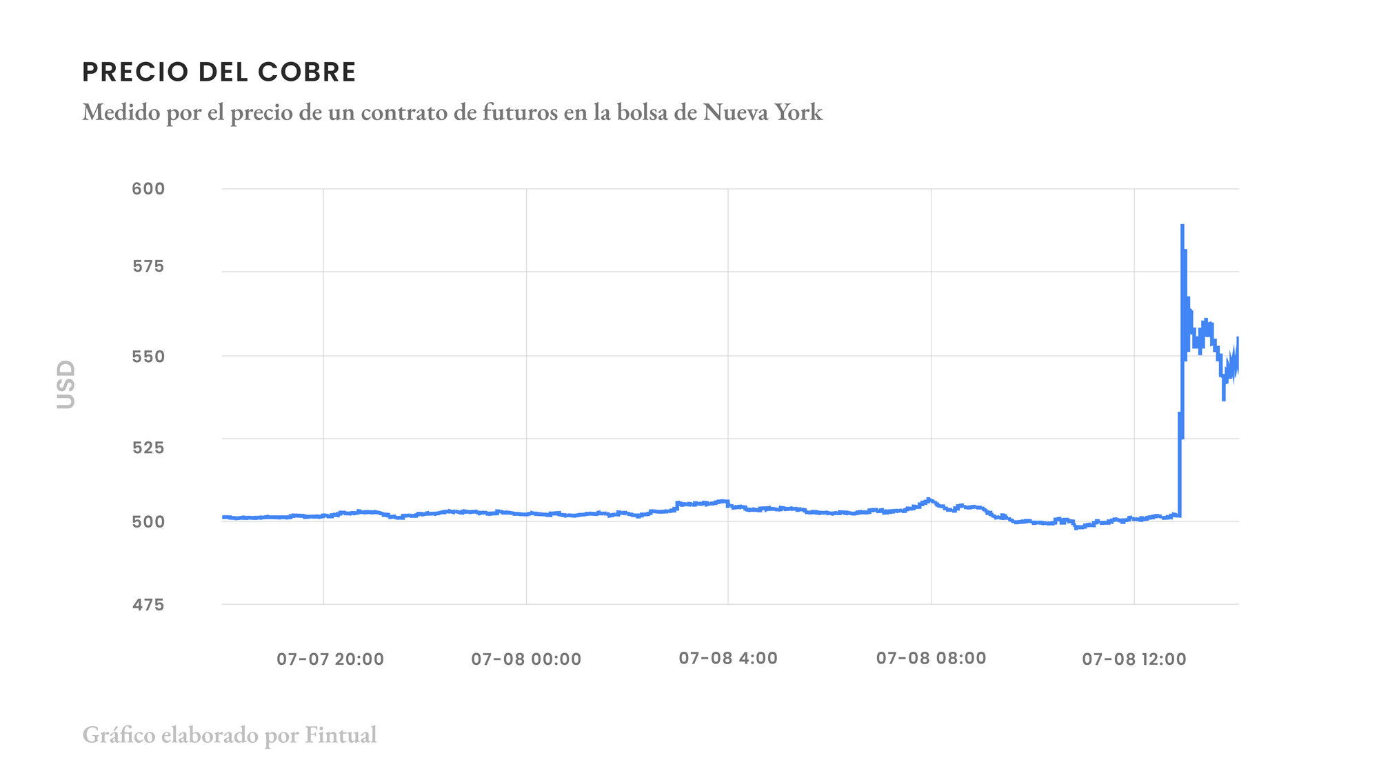 La reacción inicial al titular fue un aumento brusco en el precio de los futuros de cobre en la bolsa de Nueva York.