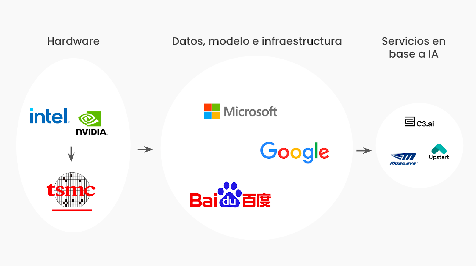 Al final del día, los chips que produce Nvidia se utilizan para procesar datos, por eso mientras el mundo quiera procesar más datos, mejor le irá a Nvidia. ¿Y por qué he escuchado que se asocia Nvidia a la inteligencia artificial? El desarrollo de la IA ha aumentado la demanda por data centers e infraestructura de datos en general, y los grandes ganadores han sido los proveedores de hardware (chips), como Nvidia. Sin chips, no hay fiesta.