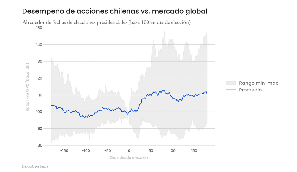 En general, al menos en términos históricos, existe una alta variabilidad en los escenarios pre y post elecciones, aunque en promedio, la bolsa ha tenido un mejor comportamiento en el período posterior a las elecciones de primera vuelta.