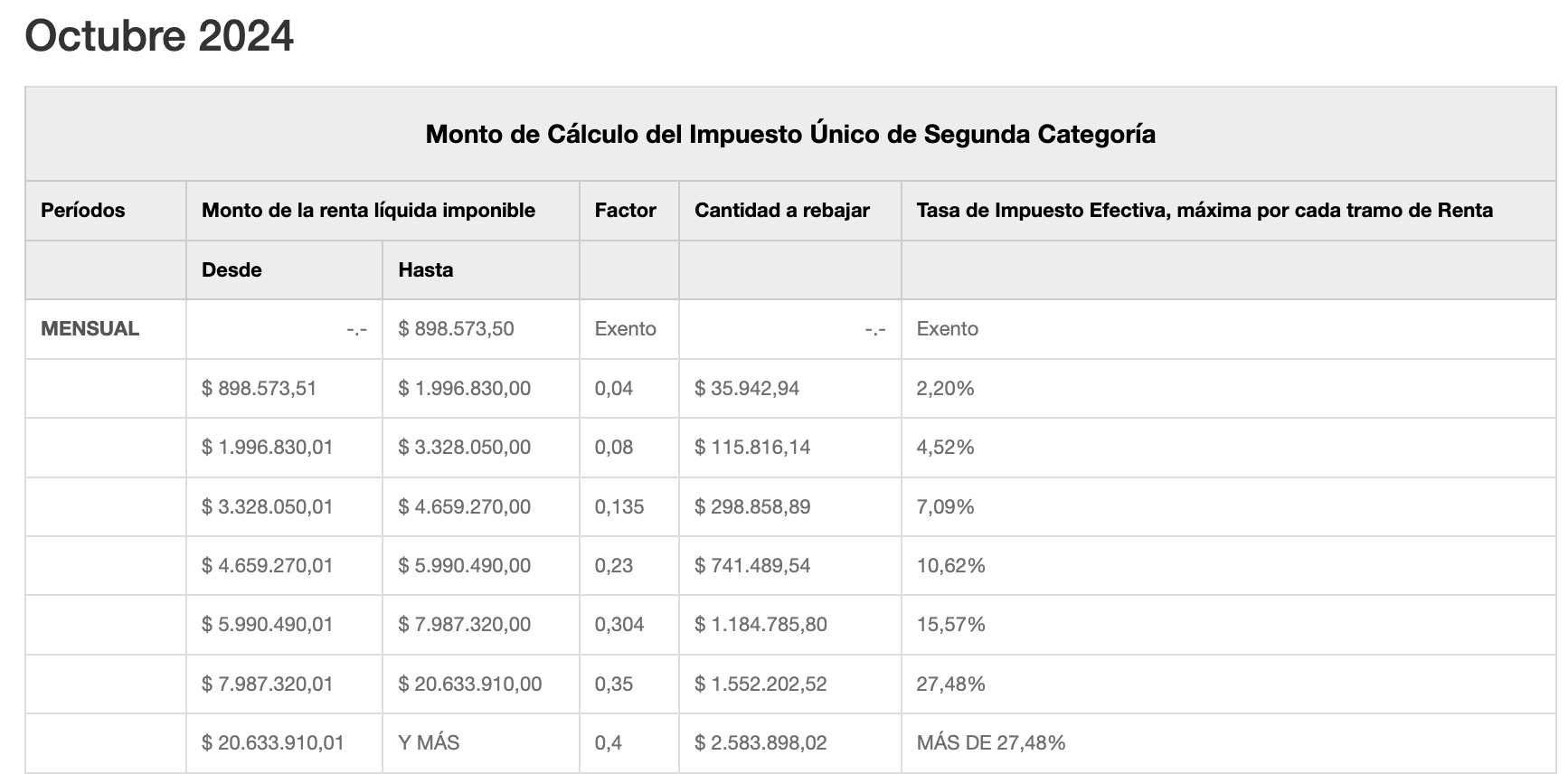 | Régimen | Beneficio | Límite |