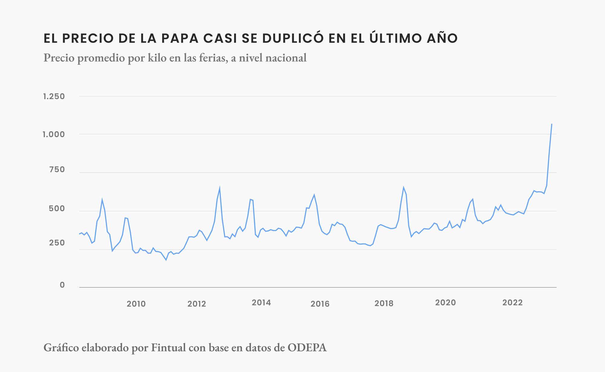 Si promediamos todos los tipos y calidades de papa en las ferias, llegamos a que la papa ha subido más de 110% en el último año.