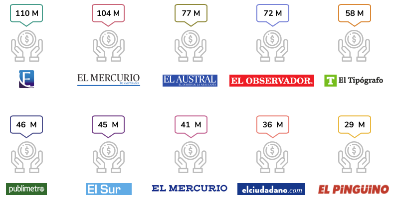 El top 5 de los medios escritos forman parte de la plataforma de medios de El Mercurio, propiedad de la familia Edwards y $377 millones llegaron a dichas sociedades filiales.
