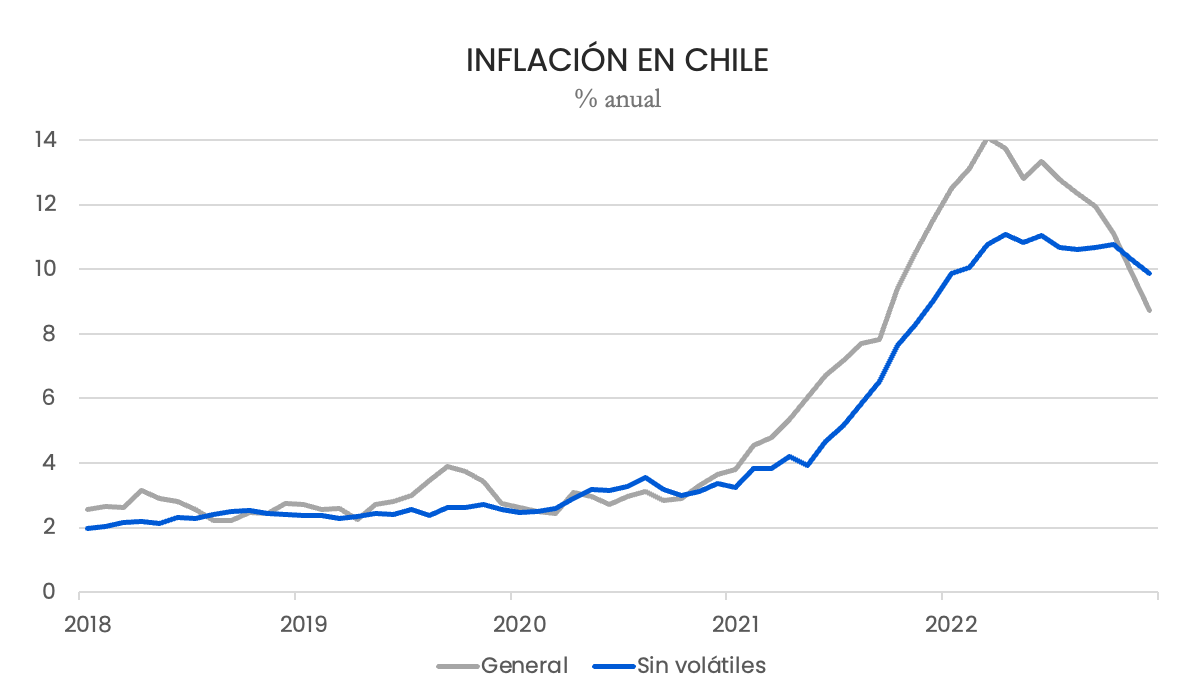 De varias maneras. Una es ver la tendencia de la inflación anual, sobre todo del índice que excluye ítems como frutas, verduras, bencinas o paquetes turísticos, que son muy volátiles y por tanto sus movimientos no son muy fiables. Y sí, la inflación del IPC sin volátiles ha bajado un poco, de 11% en noviembre a un poco menos de 10% en mayo.
