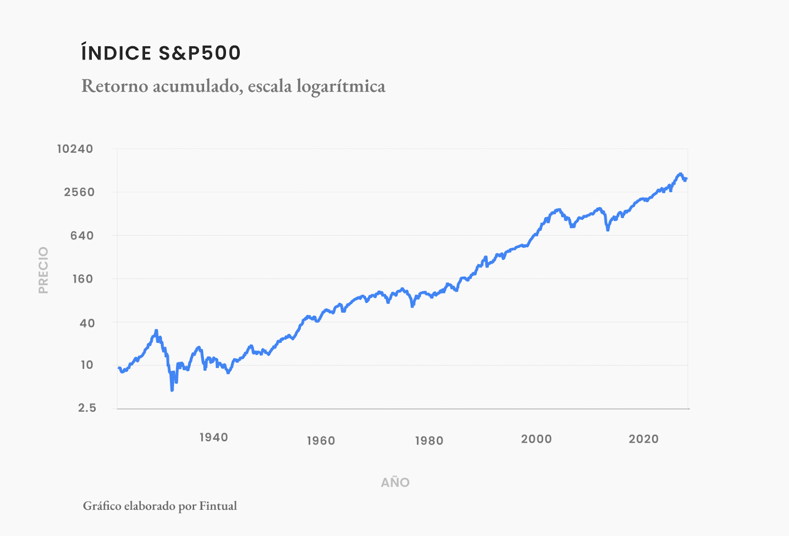 Volvamos al ejemplo del índice S&P500. Durante los últimos 100 años hasta 2022, dos tercios de los años han tenido retornos positivos. Pero no han sido pocos los años con retornos negativos, por ejemplo en 2001-2002 o durante 2008. Las bajas del mercado son totalmente normales en una cartera de inversiones de buen retorno, incluso aquellas bien diversificadas.