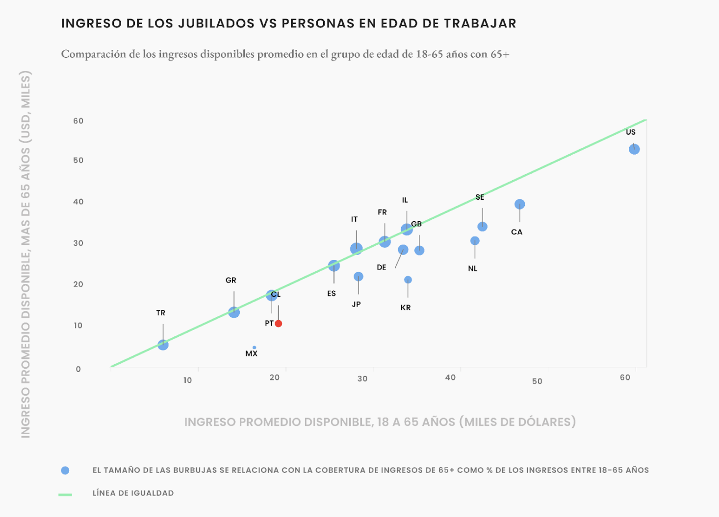 En países como Francia, Israel o España, la gente mayor tiene casi el mismo ingreso que la gente en edad de trabajar. De hecho, en Italia tienen incluso un poco más. Pero en Chile estamos bien lejos de esos países. En nuestro país la calidad de vida disminuye sustancialmente al jubilar.
