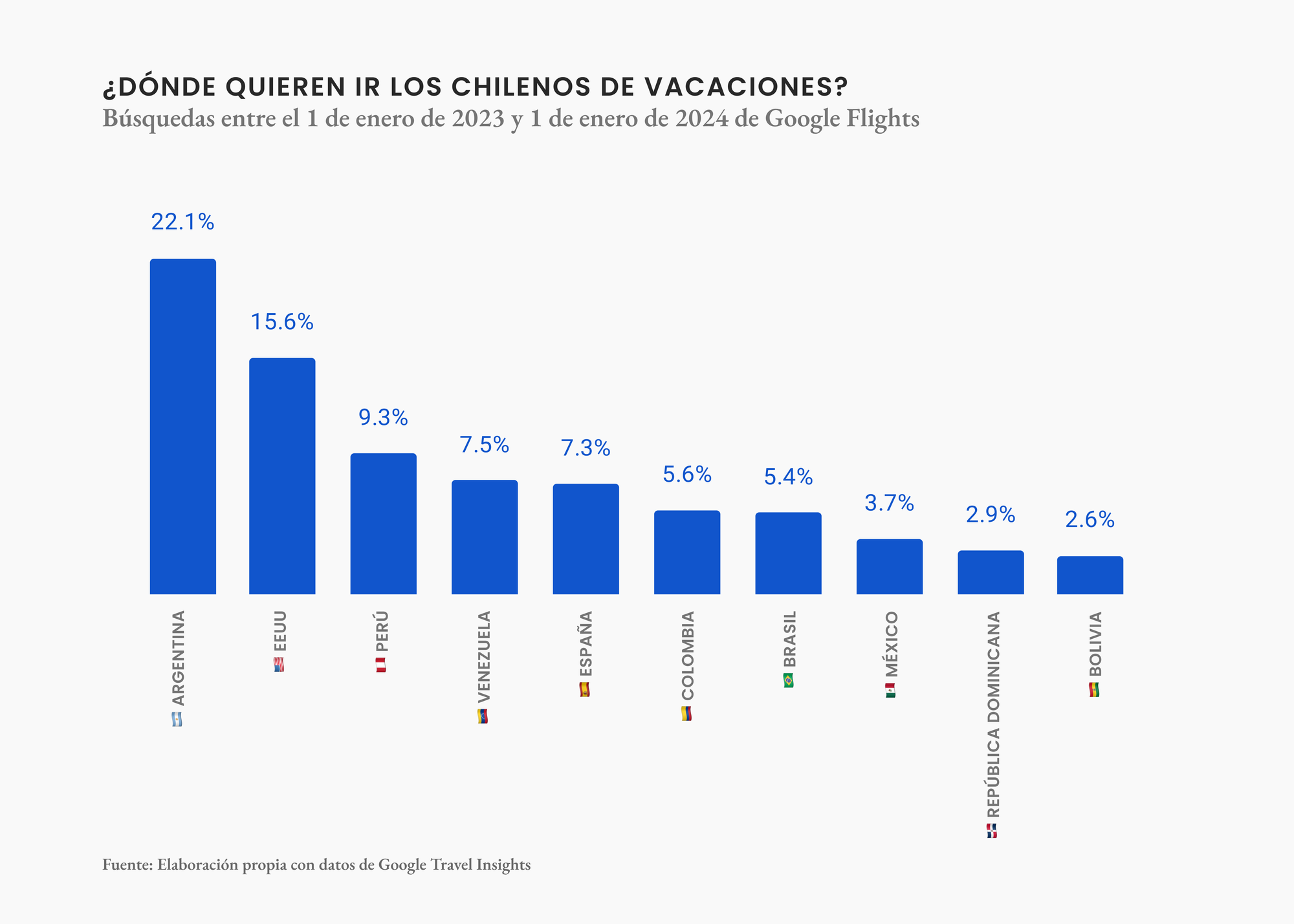De acuerdo a google los destinos que buscan los chilenos fuera del país seguro no te llamarán la atención: El top, Buenos Aires, y no hay que extrañarse si está dentro de los destinos más buscados en el mundo y nos queda al lado.
