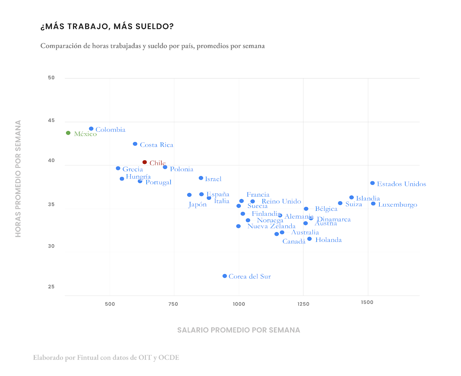En Chile la gente en promedio trabaja casi nueve horas más que en Holanda, pero gana la mitad que en ese país.