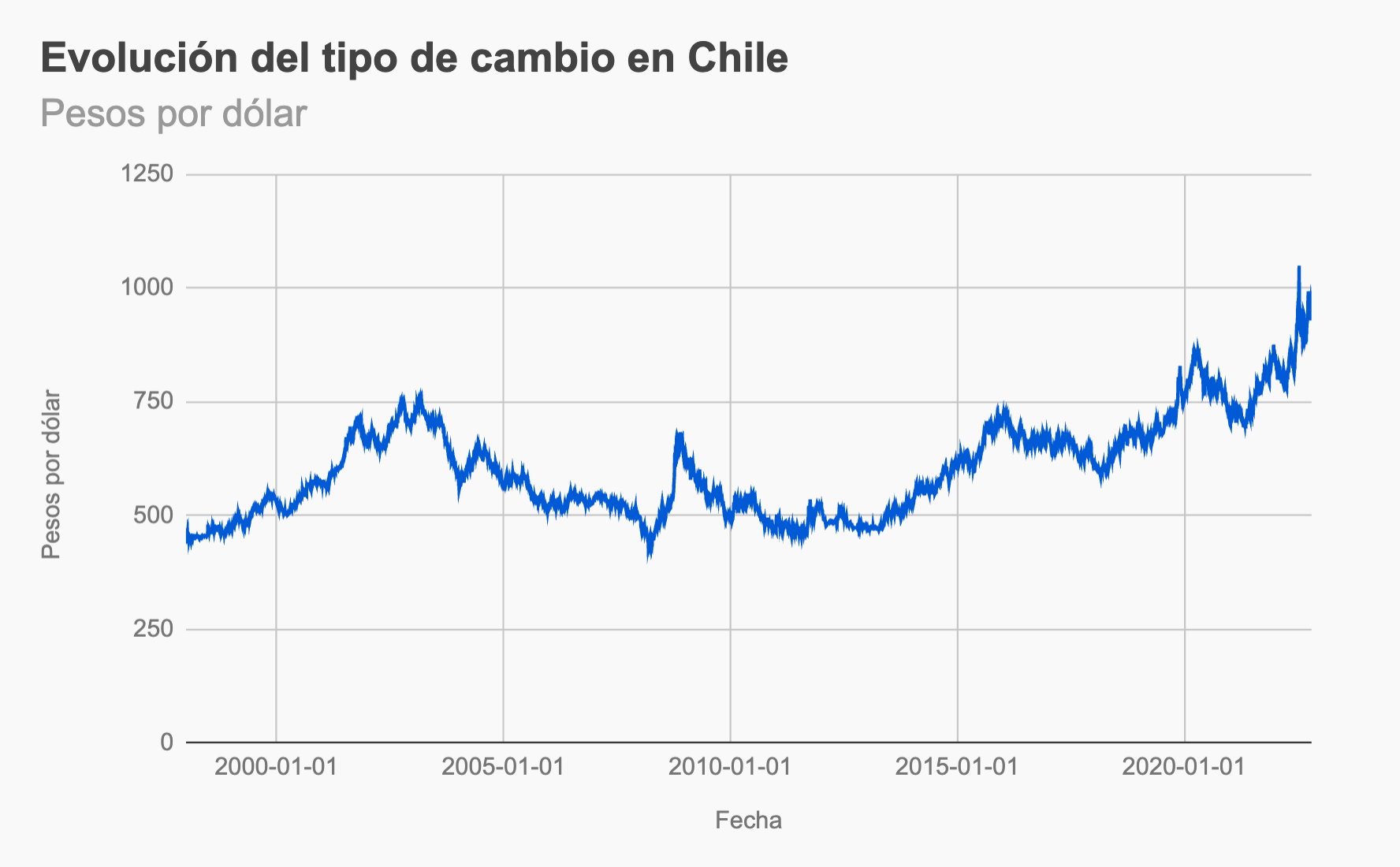 Hoy, tras un terremoto, dos Copas América, un estallido social, una pandemia y 4 períodos presidenciales, el dólar está en 970 pesos, o sea, más del doble de lo que valía antes.