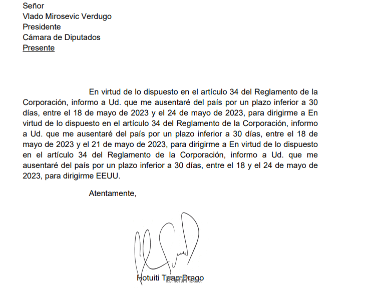 ¿Qué pasa si le pides una pega a GPT pero en la mitad se te cae el internet? Quizá eso le pasó al ex modelo y ahora diputado Hotuiti al redactar el texto que le mandó al presidente de la cámara de diputados.