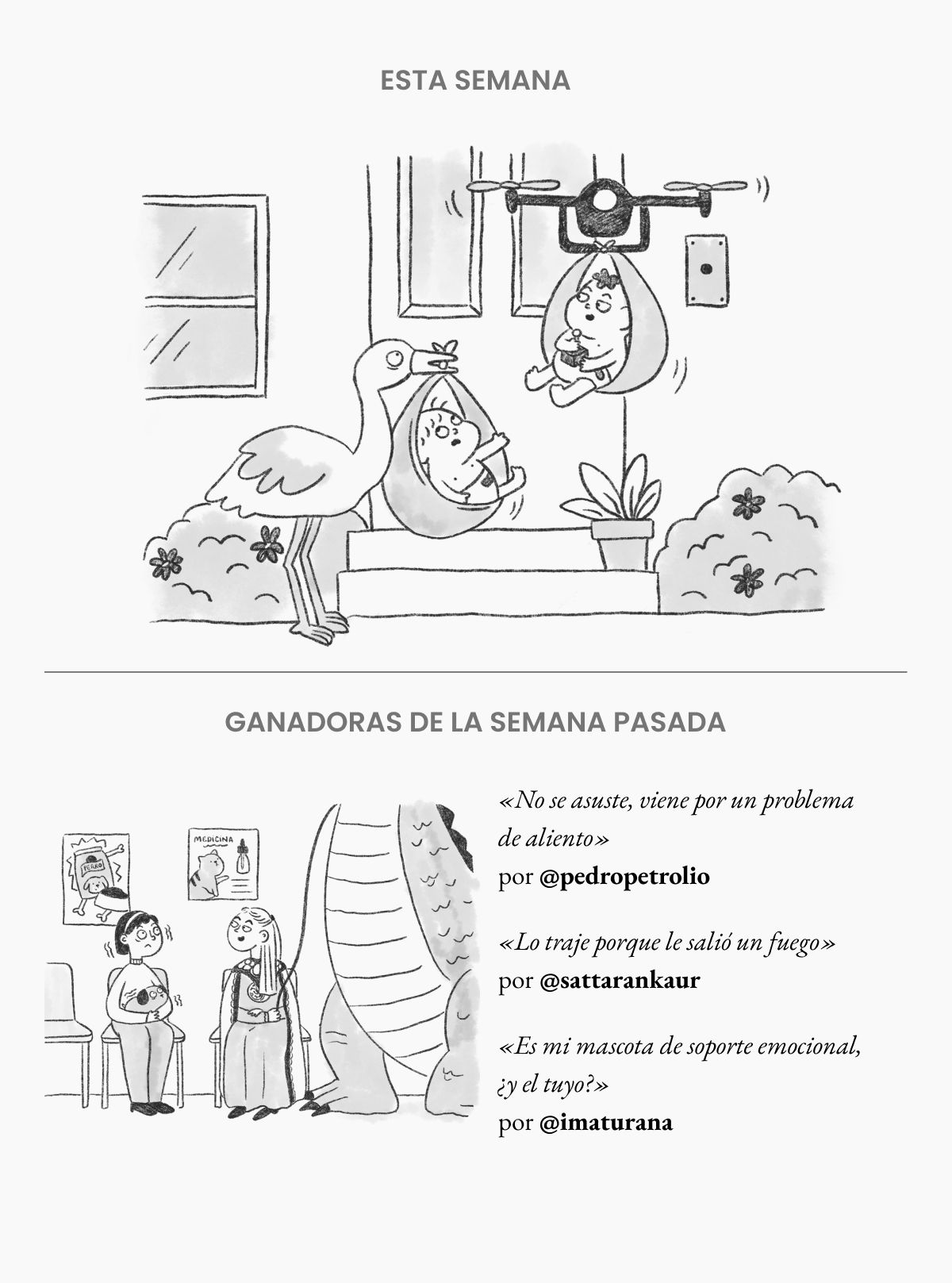 Cada semana pondremos una caricatura sin texto. Responde a este correo inventándole una frase o diálogo como bajada al dibujo. La próxima semana publicaremos las ganadoras.