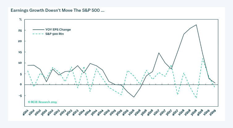 BCA Research tiene una investigación que va en contra de ese “sentido común”. Su hipótesis atrevida es que el crecimiento de las ganancias no es tan importante para las acciones cuando se mide trimestralmente.