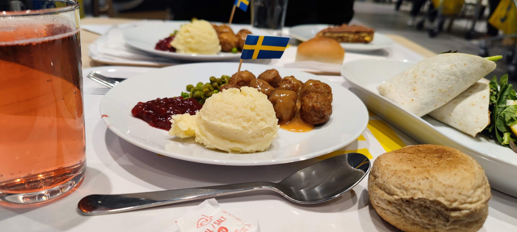 Es autoservicio y algunos de sus menús son albóndigas suecas, albóndigas vegetales, pollo asado con papas fritas, wrap de salmón, etc.