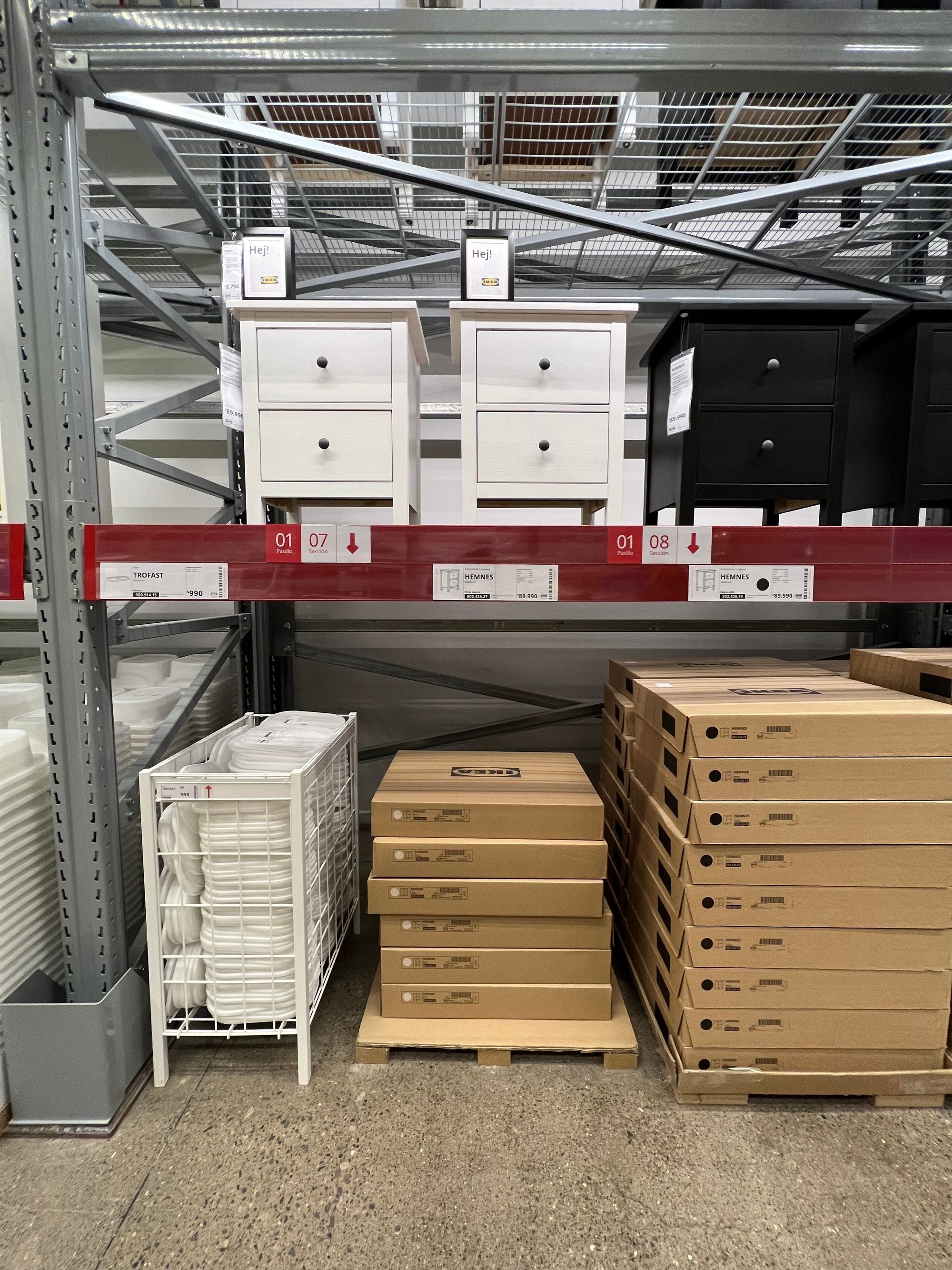 Practiquemos: digamos que me gustó un velador y tenía una etiqueta roja. Ahí decía que iba a estar arriba en Decohogar y el mueble estaba en la sección 07 del pasillo 01. Subimos directo y lo buscamos. Ahí está la caja lista para llevar.