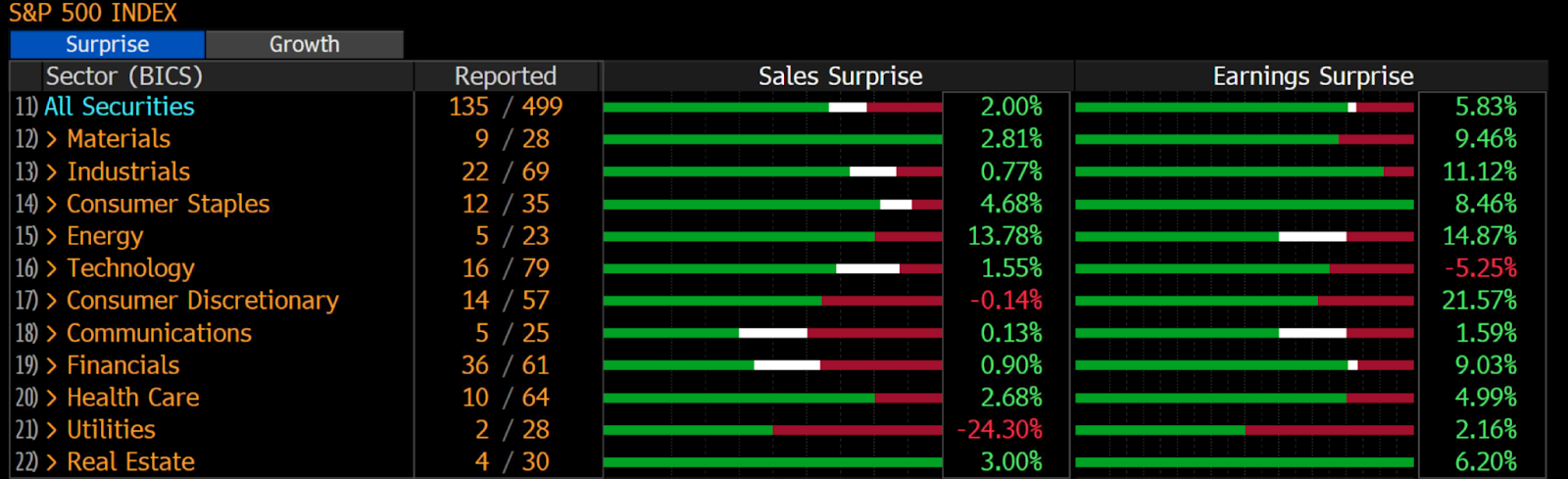 La gran mayoría de las empresas del S&P 500 reportaron sus resultados del primer trimestre de 2022 durante esta semana.