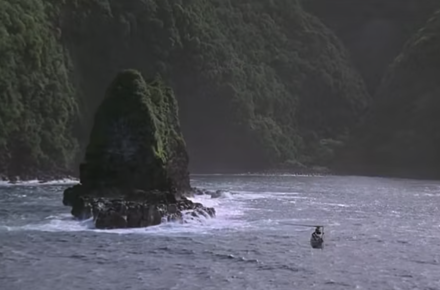 A la izquierda la escena de los helicópteros de Jurassic Park y a la derecha los peñones de Robinson Crusoe.