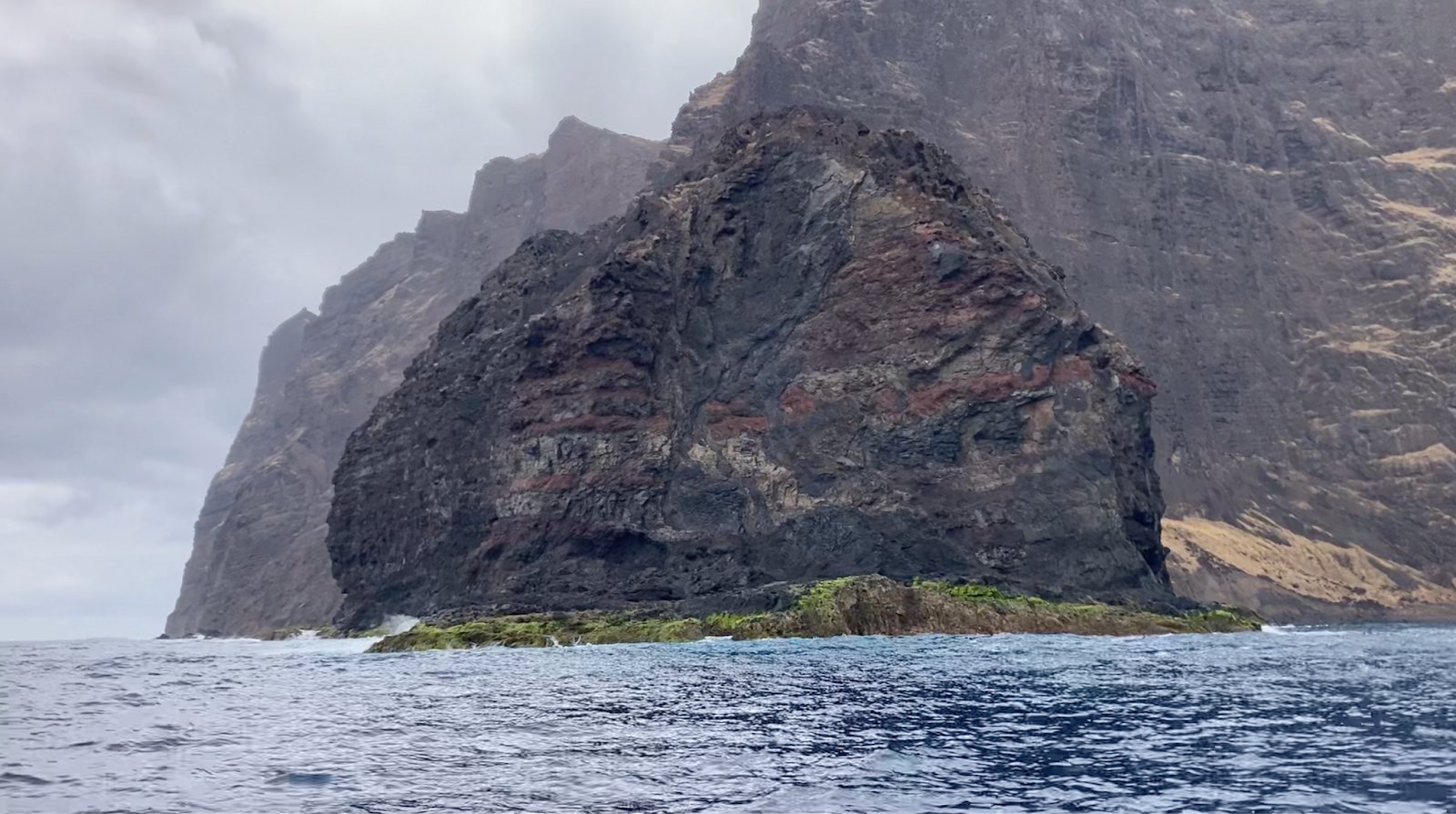 Después del aterrizaje, te llevan en bote desde la Bahía del Padre –donde está la pista–, a la Bahía de Cumberland, donde está el pueblo de Robinson Crusoe. El tramo en bote es un paseo turístico en sí: peñones de roca enormes con acantilados directo al mar más azul que he visto, un azul infinito. Me siento incapaz de explicarlo 100% con palabras, así que les muestro un video de cómo es.