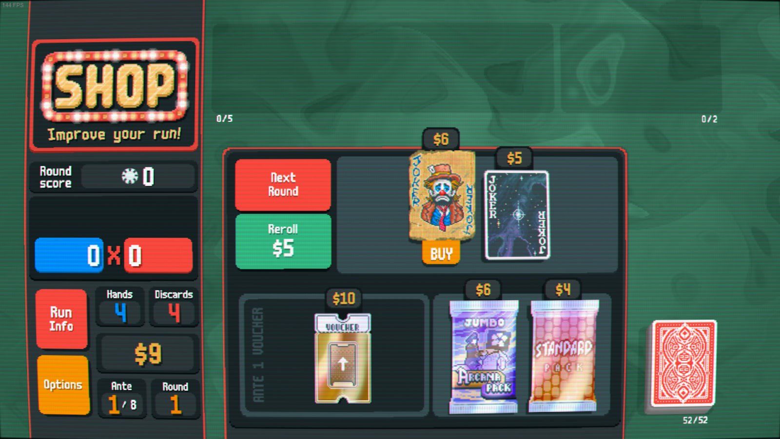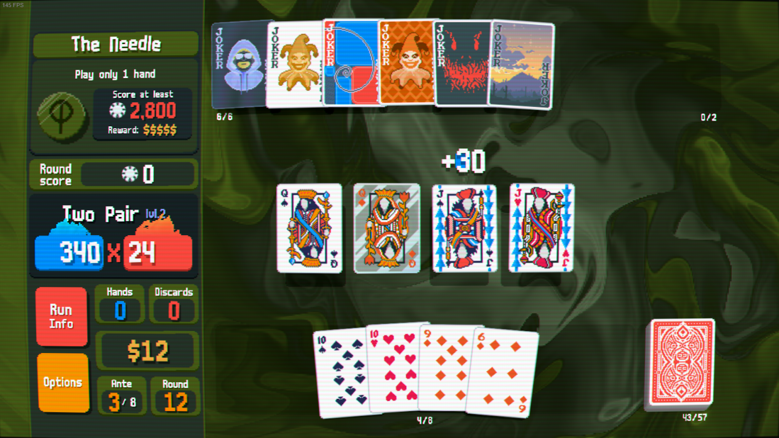 Además del mazo tradicional con ases, corazones y picas, hay distintas cartas que cumplen diferentes funciones: arcanos del Tarot, cartas de planeta que aumentan los multiplicadores de cada mano, y varios tipos de comodines. Incluso hay sobres y versiones foil u holográficas como si se tratara de Magic the Gathering o Pokémon. Este elemento de improvisación permite crear el efecto de adicción al juego, y lo convierte en algo hipnótico: ¿lograré conseguir una escala real si descarto este 5 de corazones? ¿Será conveniente agregar este comodín a mi arsenal? ¿Podré conseguir con esta mano el puntaje necesario para avanzar? Aunque puede que suene complicado (y lo es, en realidad, cuando llegas al punto de pensar estrategias con las cartas en tu arsenal), el juego es bastante intuitivo y explica los distintos tipos de manos sin necesidad de un tutorial extenso.