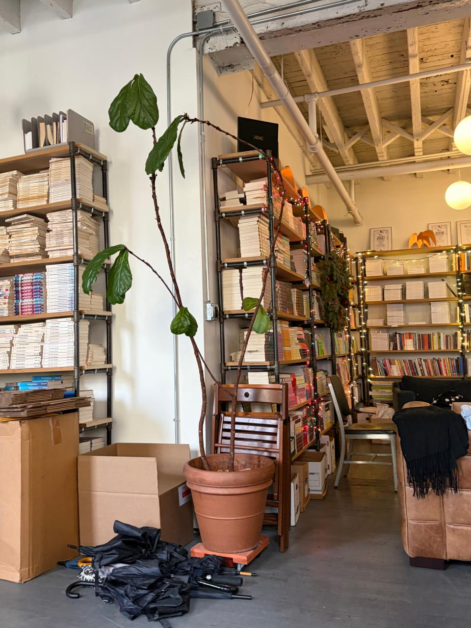 La revista se emplazaba en el tercer piso. Una habitación de techos altos, con cajas apiladas por todas partes, donde se desparramaban unos cuantos escritorios anticuados, diferentes entre sí: uno de fierro forjado, varios de chapa, unas mesas de vidrio, todo cubierto de libros, lámparas y computadores obsoletos. Junto a la entrada languidecía una higuera hoja de violín.