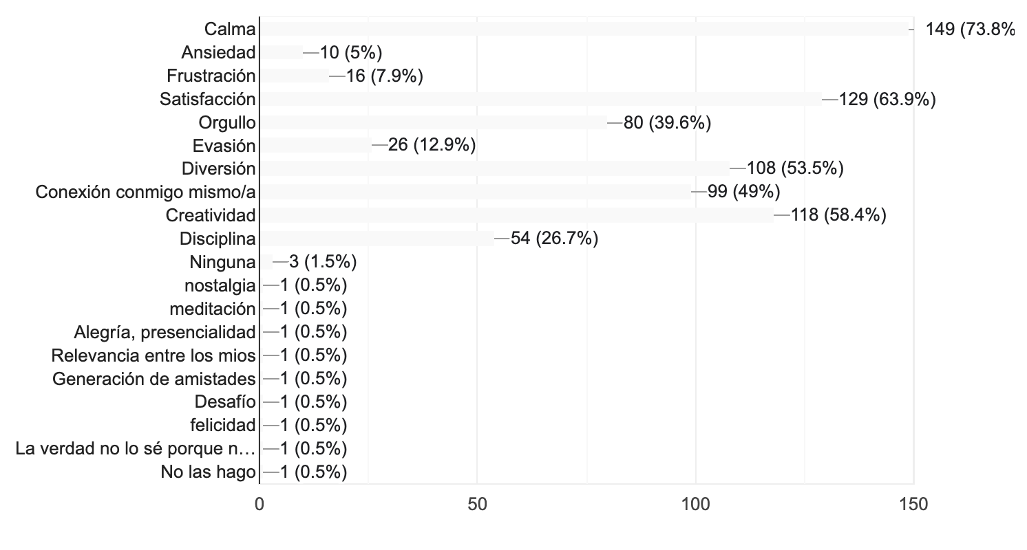 En resumen, esta pequeña muestra de lectores es bastante afín a los hobbies y manualidades, confían en la preservación de la creatividad humana por sobre la artificial y encuentran emociones positivas cuando realizan sus actividades de tiempo libre. Las redes sociales no juegan un papel importante -o eso dicen- en la adopción ni en la inspiración para realizar estos hobbies, y la mayoría coincide en que le gustaría tener más tiempo para dedicarse a ellos, sin embargo declaran que varias veces a la semana se embarcan en la alegría de la creación.