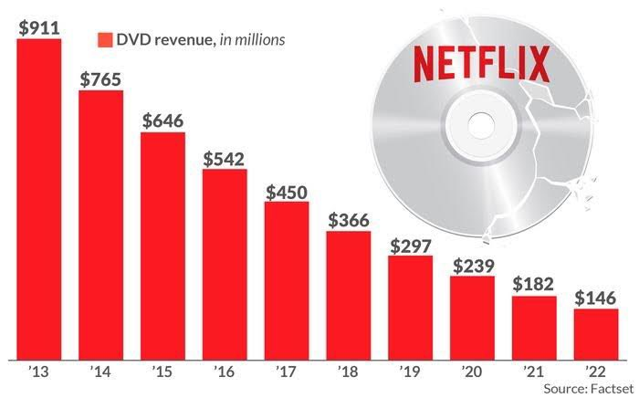 Entrados en la segunda década del siglo XXI, esta área de la empresa no hizo más que achicarse. Esta semana la división de DVDs de Netflix cerrará para siempre.