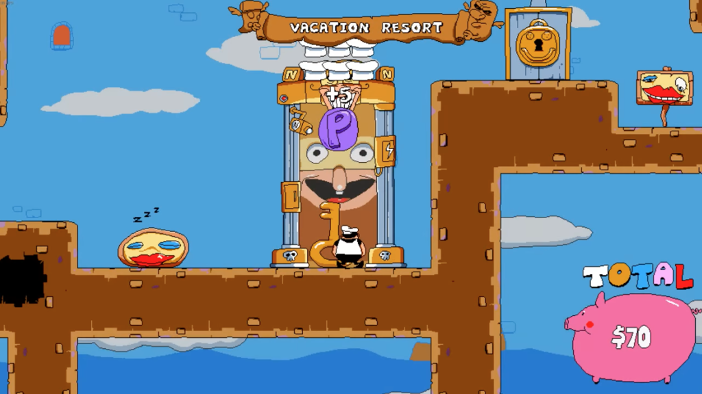 Cada nivel tiene un sistema de clasificación, y como en Pizza Tower, mejorar la puntuación es un reto adicional y no un requisito. También se añaden secciones que solo se pueden acceder después de terminar el juego y desbloquear las habilidades con tus aliados. Si bien no es una mala idea para probar otras dificultades, hubiera preferido ser capaz de seleccionar los niveles de antemano y no esperar al final. Cuando lo terminé quise revisar las puertas ocultas, y descubrí que tenía que pasar por todos los tutoriales y cinemáticas de nuevo. No es algo que arruine el juego por completo, pero es un inconveniente.