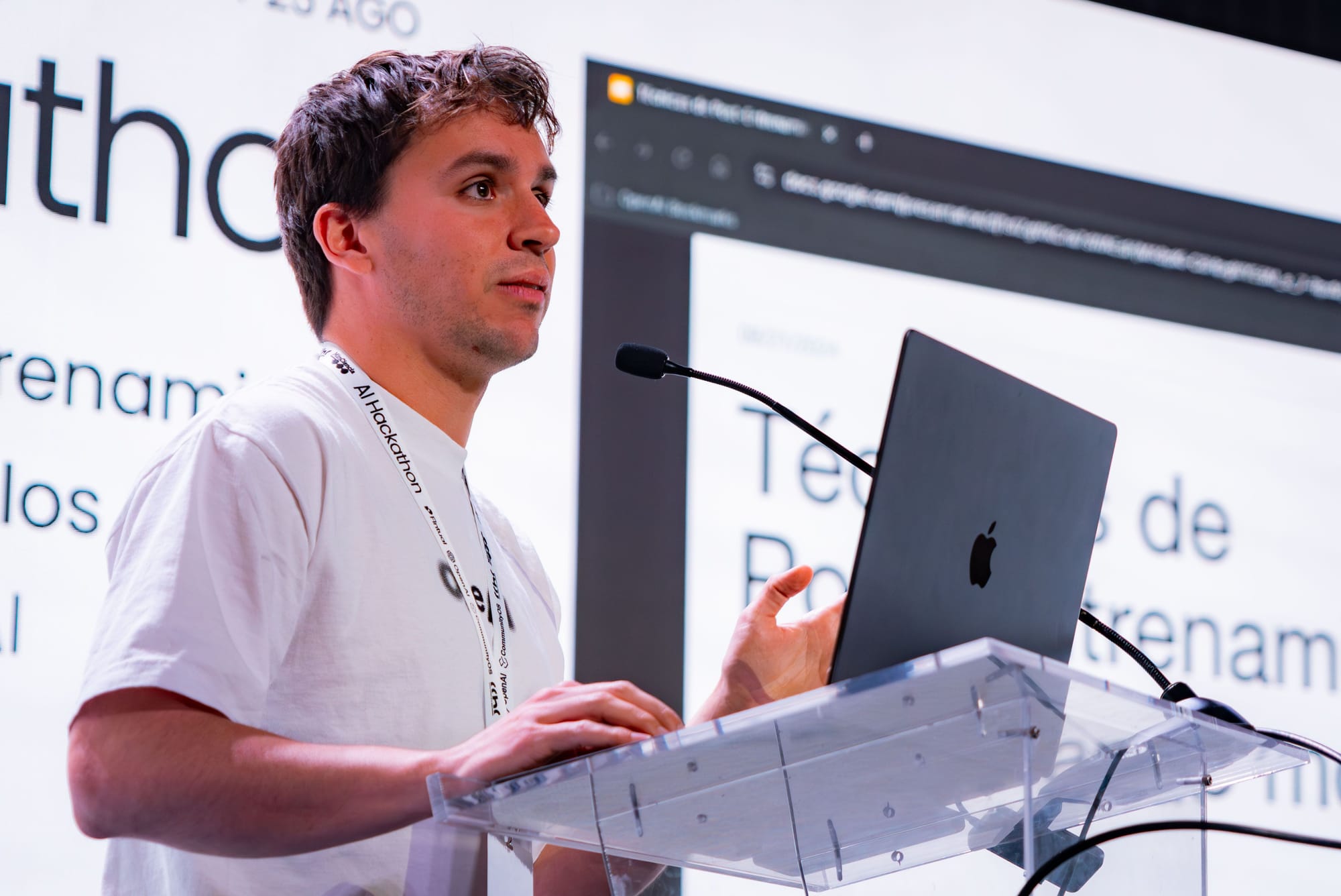 - Bobby Stocker, de OpenAI, en su charla "Técnicas de Post-Entrenamiento en IA: Afinando modelos", nos contó cómo optimizar modelos de IA después de su entrenamiento inicial y cómo usar herramientas prácticas para que los desarrolladores mejoren el rendimiento de sus proyectos de IA.