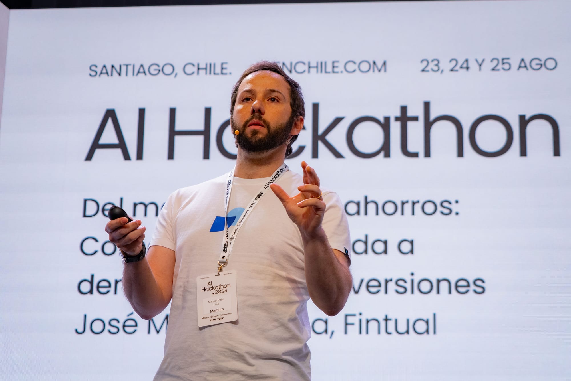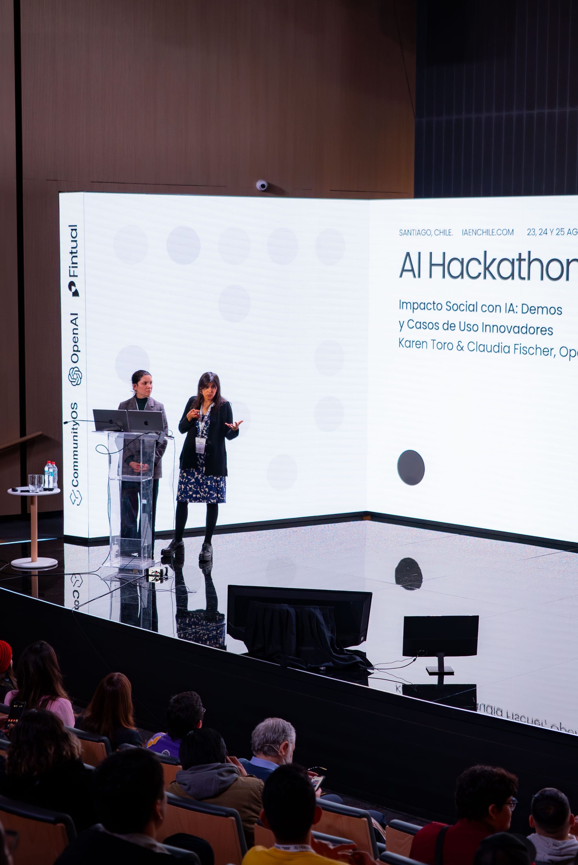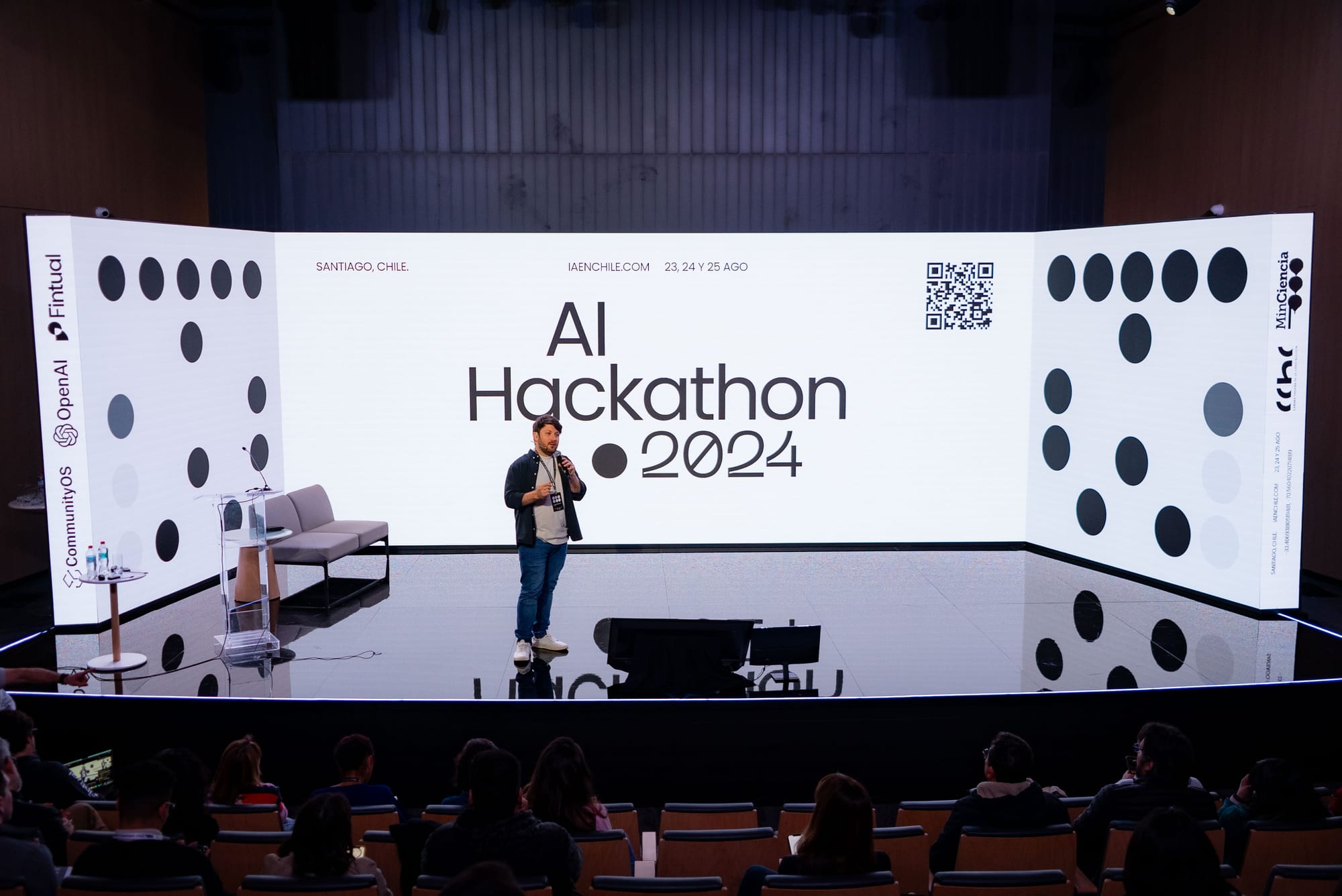 Este súper-evento fue posible gracias a la colaboración de varias entidades: OpenAI, compañía líder en desarrollo de modelos de inteligencia artificial en el mundo, fue el patrocinador principal. Fintual, una de las tech más innovadoras de Latinoamérica (perdonen el auto-bombo), fue el auspiciador, y además, el evento contó con el apoyo del Ministerio de Ciencias, Tecnología, Conocimiento e Innovación de Chile, juntando al sector privado con el público. La organización estuvo a cargo de CommunityOS, y como anfitrión, la Cámara Chilena de la Construcción (CChC) proporcionó el escenario perfecto, albergando el evento en su edificio.