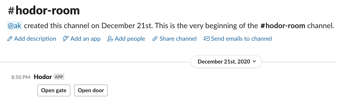 Alejandro es nuestro Palace Hacker y creó Hodor, una app en Slack para poder abrir la reja y la puerta de entrada de la oficina.
